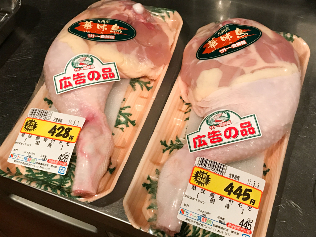 他の鶏もも肉と食べ比べるとわかりますが、ものっすごくプリプリしてて美味しいんです。今回はこの華味鳥のもも肉を使ってみたいと思います。